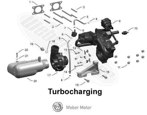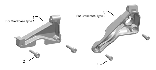 Note: The turbocharger bracket is dependent on the crankcase type. Along with a change in crankcase type, the Turbocharger Bracket must also be exchanged.See Crankcase Case for more info. |